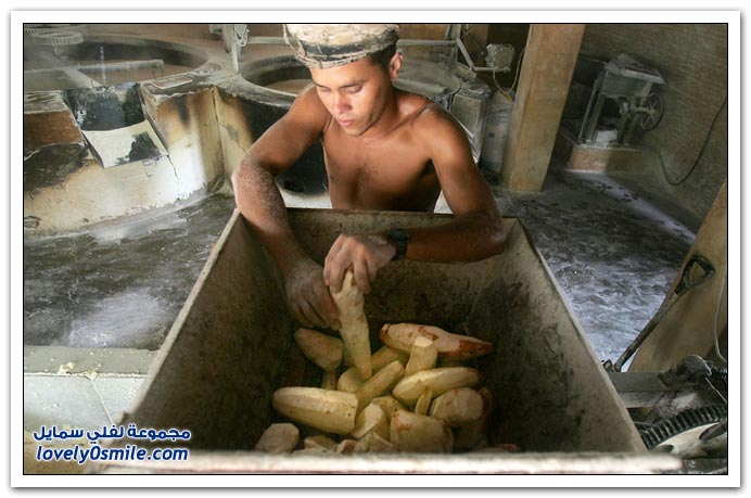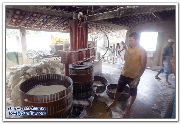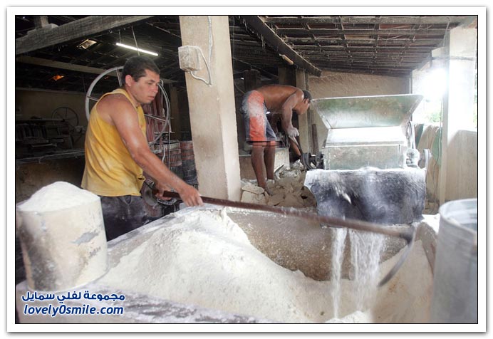 - من خلال الصور التالية ستتعرف على مراحل إنتاج دقيق الكسافا في أحد المطاحن من التقشير إلى التعبئة والتغليف في البرازيل.