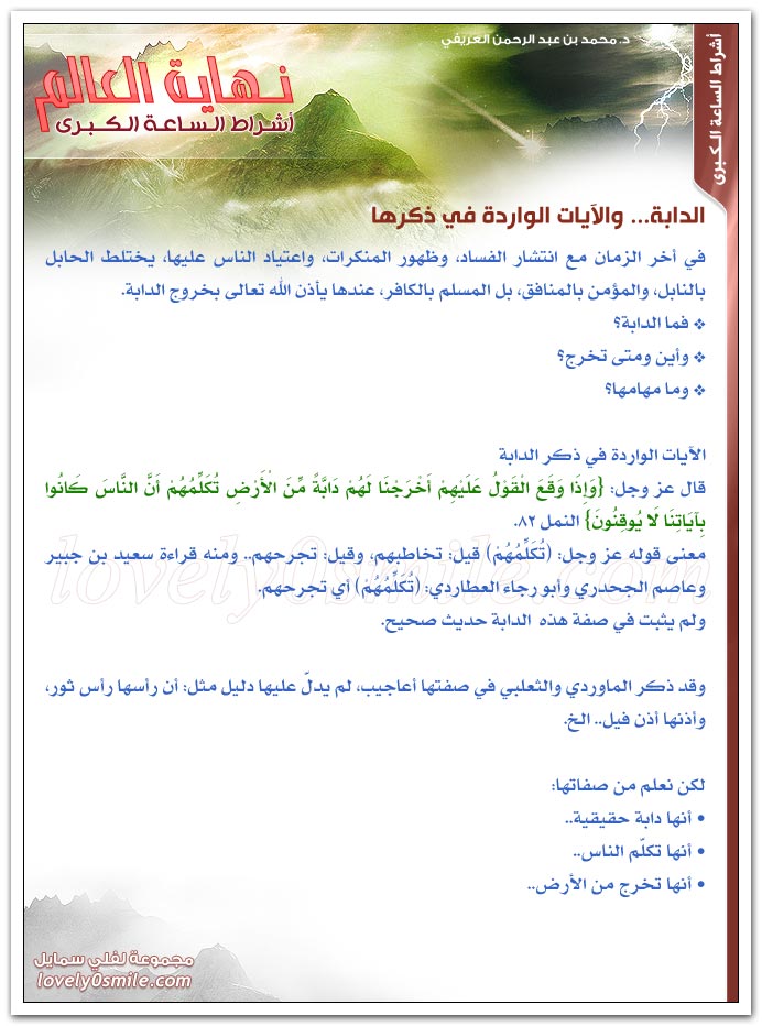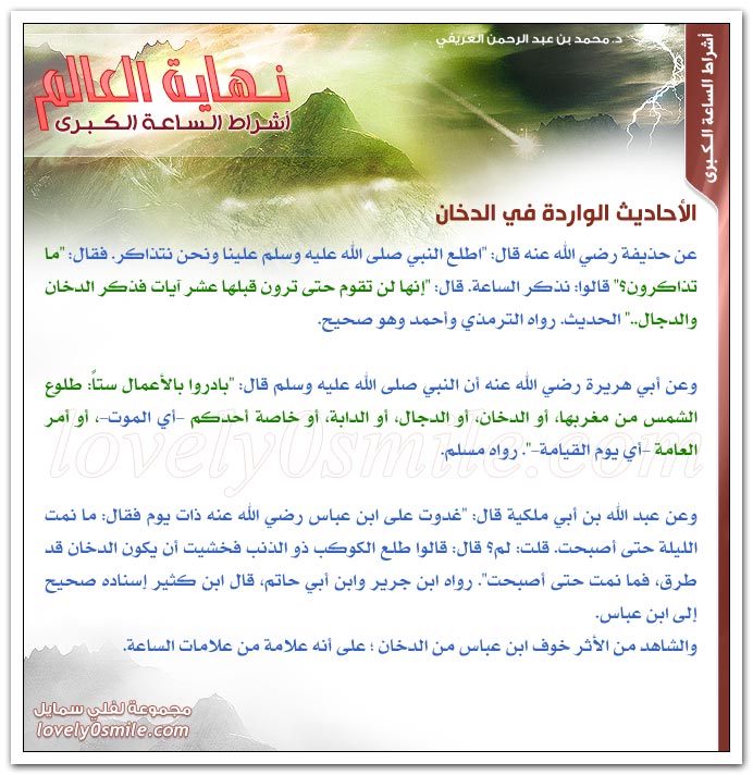الأحاديث الواردة في الدخان + الدابة .. والآيات الواردة في ذكرها
