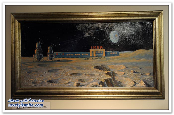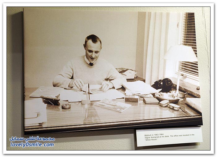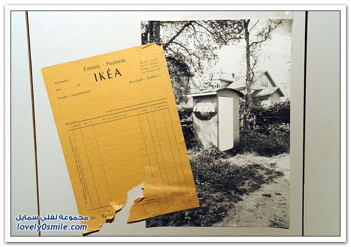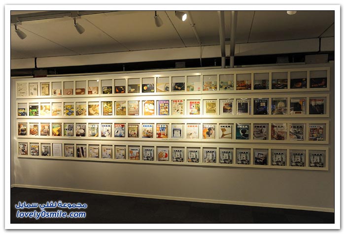 - علقت على جدران المتحف الكاتالوغات الشهيرة لـ«إيكيا» منذ أولها الذي صدر مطلع العام 1951، ولوحات تروي تاريخ الشركة وصور هزلية تمثل الزبائن الأوائل يحاولون إدخال علب الكرتون المقوى إلى سياراتهم الفولفو الصغيرة خلال الخمسينات.