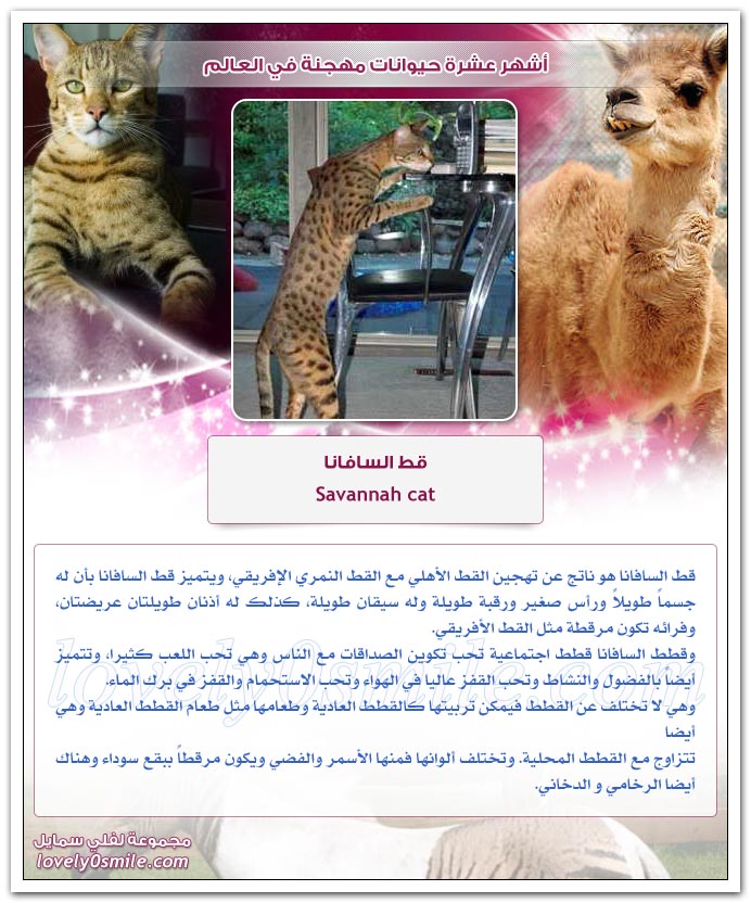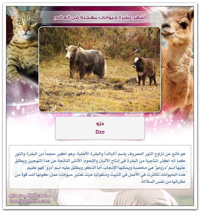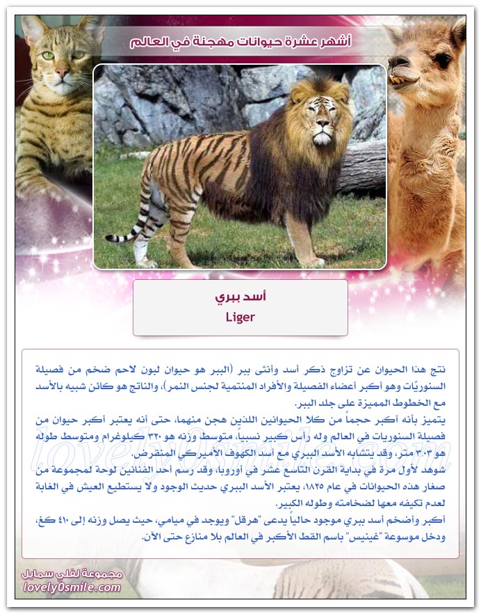 - القائمة التالية تضم قائمة بعشرة حيوانات مهجنة.