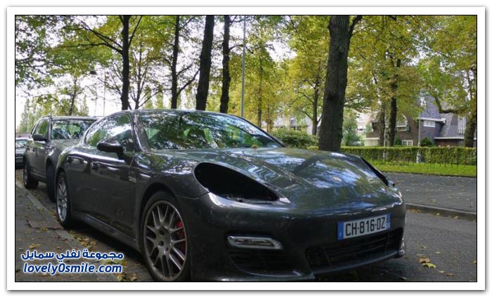 لصوص يسرقون المصابيح الأمامية لسيارات بورش