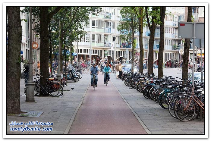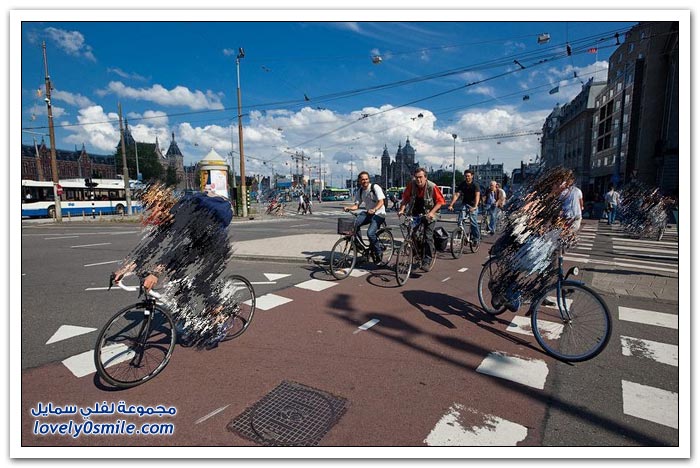 * أمستردام هي واحدة من أكثر المدن استخداماً للدراجات الهوائية في العالم، إذ تسير في شوارع العاصمة الهولندية حوالي 800 ألف دراجة يعتمد عليها سكانها البالغ عددهم 750 ألف نسمة فقط في تنقلاتهم اليومية.