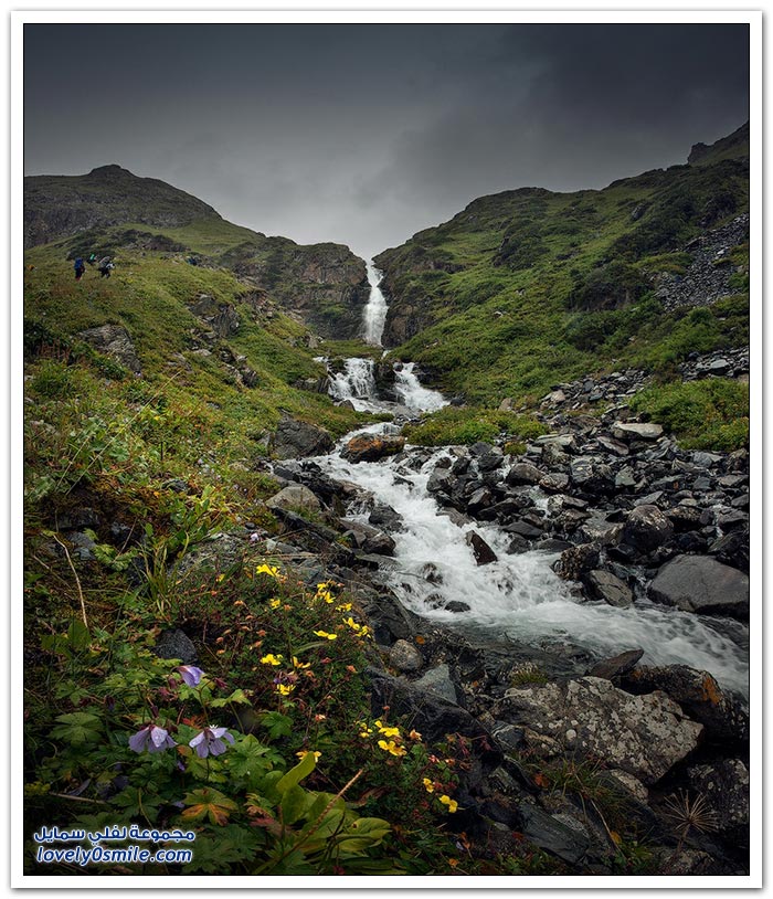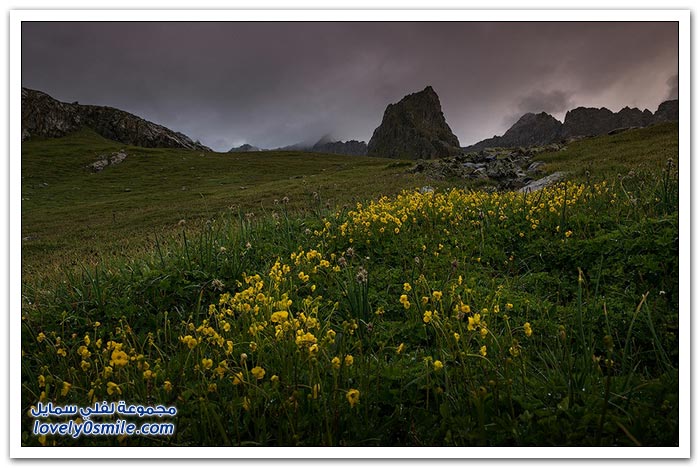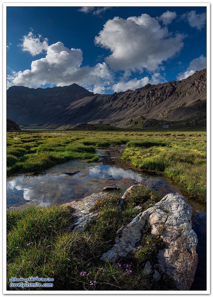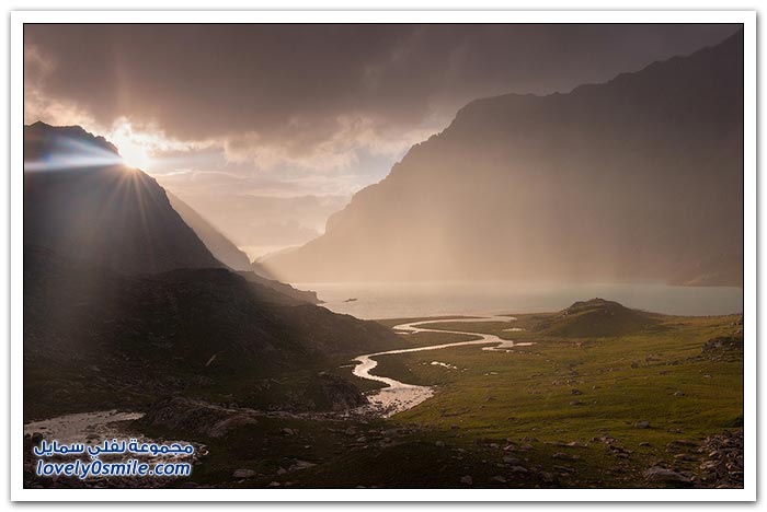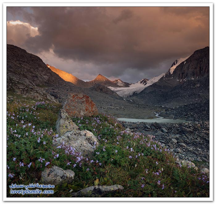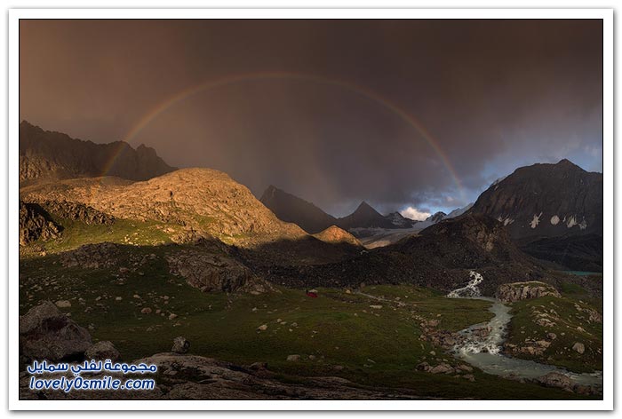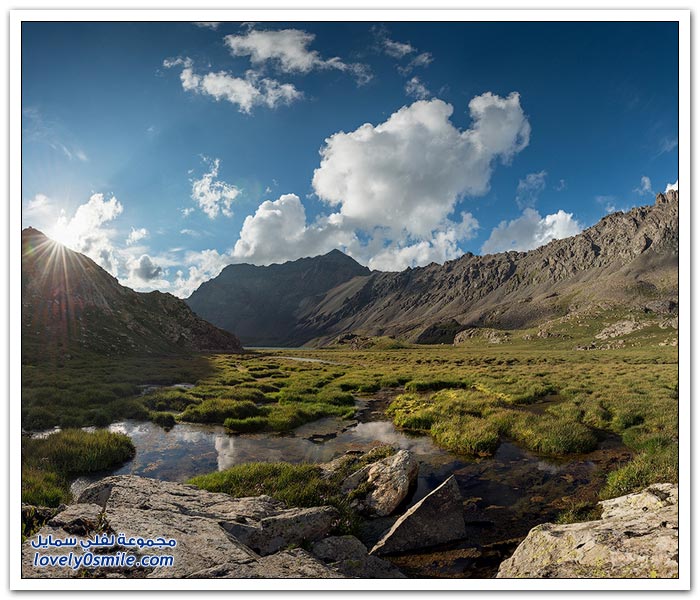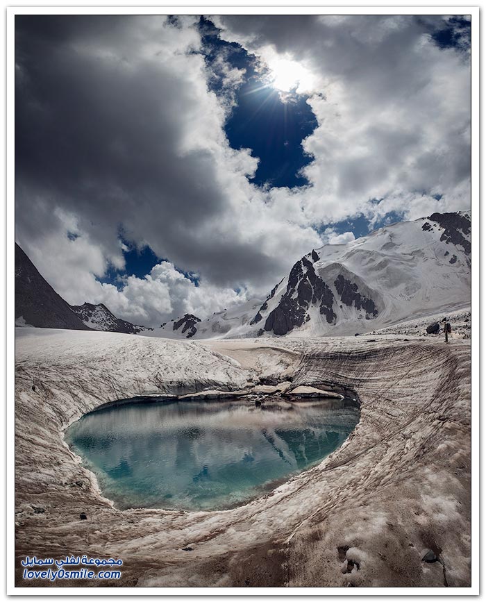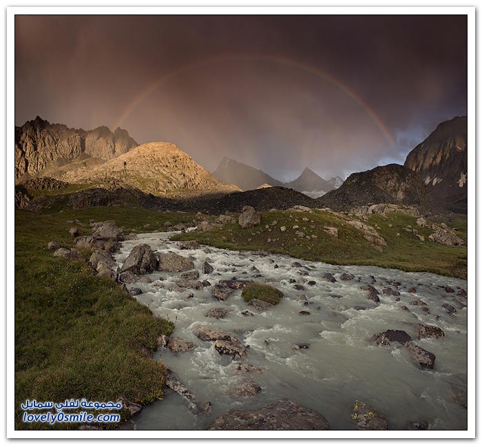 - أرض قرغيزيا جبلية في مجملها. تتكون من هضبة عالية تضم في شمالها سلاسل جبلية تمثل القسم الغربي من جبال تيان شان. وتضم في الجنوب جبال ألاس (ألايسكي) والتي ترتفع إلى أكثر من سبعة آلاف متر (7134) والقسم الأوسط من قرغيزيا سهل ينفتح في الغرب على سهول وسط آسيا. ويضم هذا القسم مجموعة من الوديان النهرية. مثل وادي نارين ووادي نار. وتكون هذه الوديان مجموعة من البحيرات. ويشكل هذا النظام وادي فرغانة، صاحب الشهرة التاريخية في الفتوح الإسلامية لهذه البلاد. والمجموعة المائية تلك جزء من الروافد العليا لنهر سيحون (سرداريا). وهناك بحيرة كبيرة في الشمال اسمها "إيصيق قول".