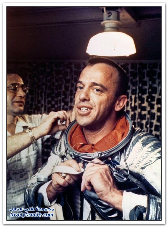 آلان شيبرد أول رجل فضاء أمريكي يرتدي بزة الفضاء الخاصة به