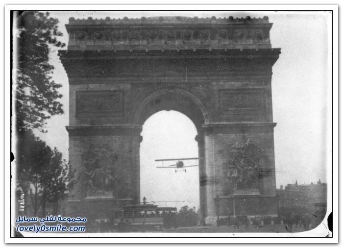 تشارلز جودفروي يعبر بطائرته المقاتلة من خلال قوس النصر في باريس، في 7 آب، 1919
