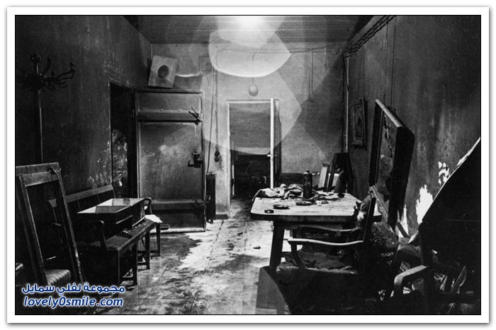أحد الصور الأولى التي تم التقاطها داخل مخبأ هتلر عام 1945 بواسطة جنود الحلفاء