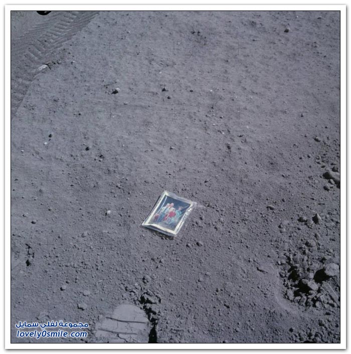 ترك رائد الفضاء تشارلز دوك صورة عائلية على سطح القمر والتي تم تغليفها بواسطة كيس من البلاستيك خلال بعثة أبولو 16