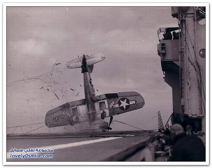تحطم الطائرة الحربية فوغت إف 4 يو كورزاير على ظهر الحاملة عند تعطل دولاب المكابح