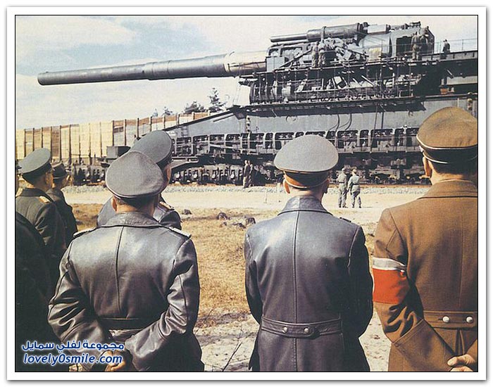 هلتر يستعرض عن بعد دبابة "غوستاف الثقيلة" عيار 800 ملم.
