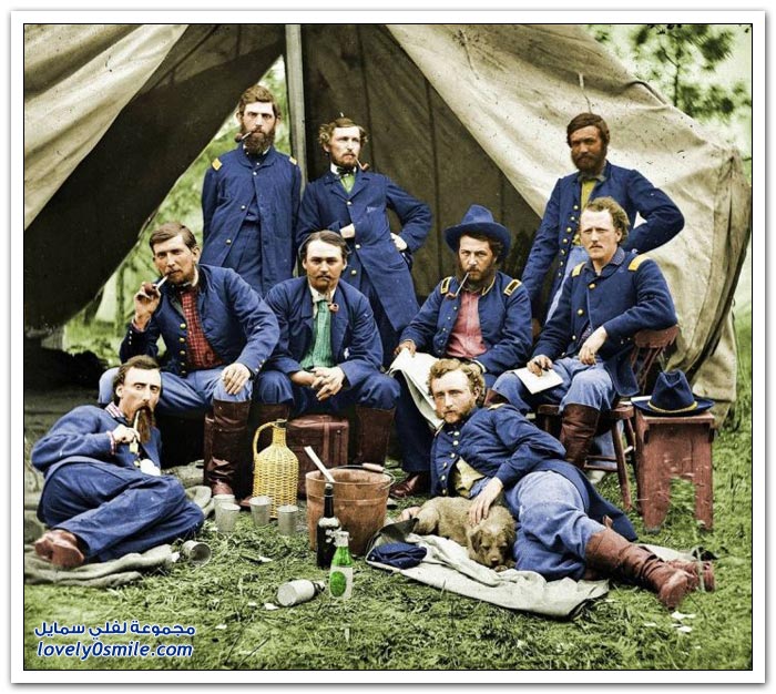 جورج آرمسترونغ كاستر (قائد سلاح الفرسان في الحرب الأهلية الأمريكية) وبعضا من رفاقه الجنود خلال الحرب الأهلية الأمريكية