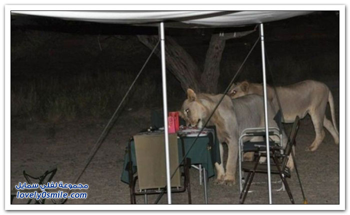 فوجئ مجموعة من السياح عندما جاء العديد من الأسود إلى معسكرهم للبحث عن الطعام.