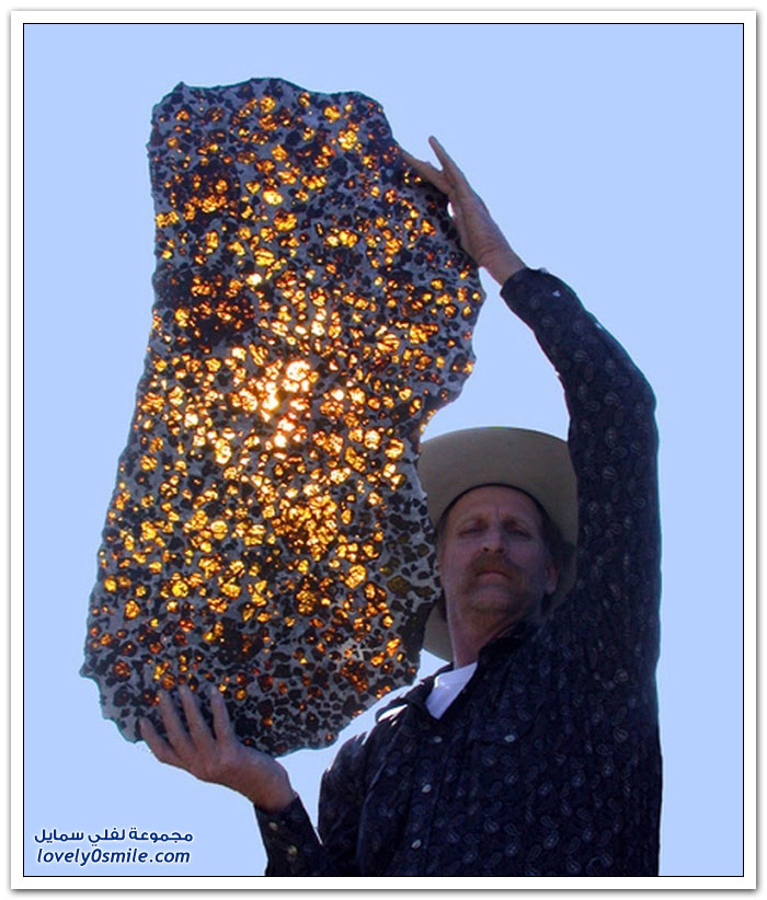 - هذا النيزك من النيازك النادرة ويزن ما يقرب من 925 باوند "رطل إنجليزي" حوالي 425 كيلوجرام، ويبدو كفسيفساء مكونة من الزبرجد ويضيء عند توجيهه باتجاه الشمس.