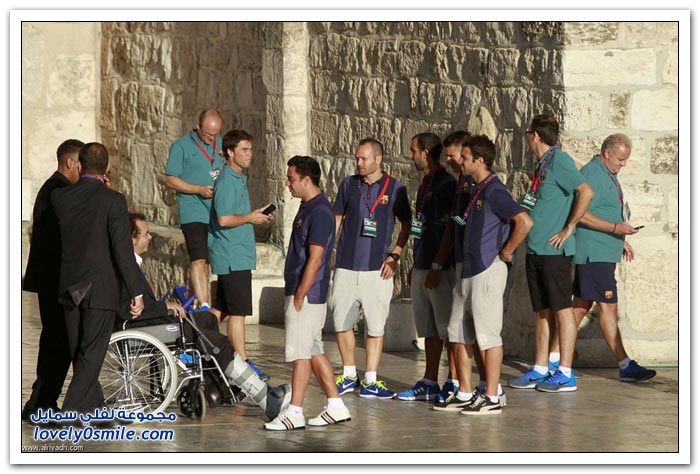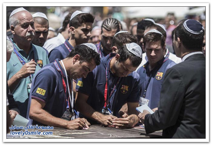 نادي برشلونة قام بزيارة حائط البراق في القدس المحتلة ضمن (جولة السلام) التي يقوم بها حاليا في الشرق الأوسط.