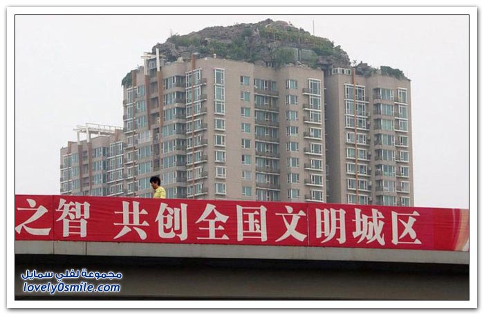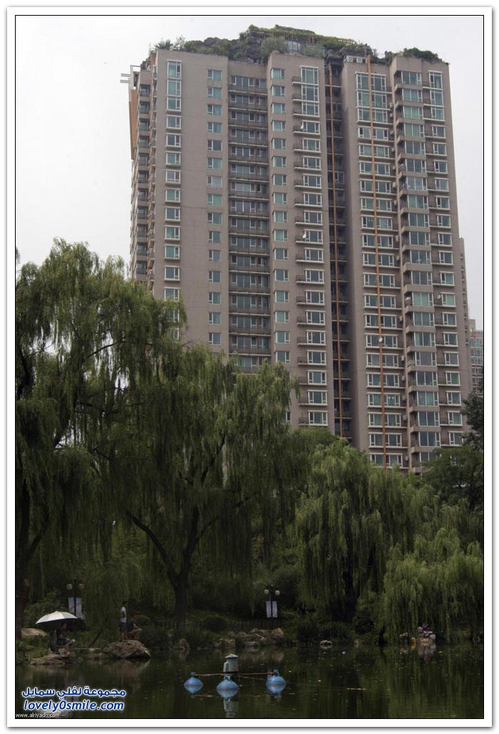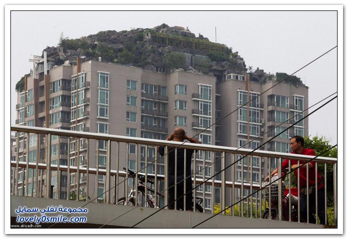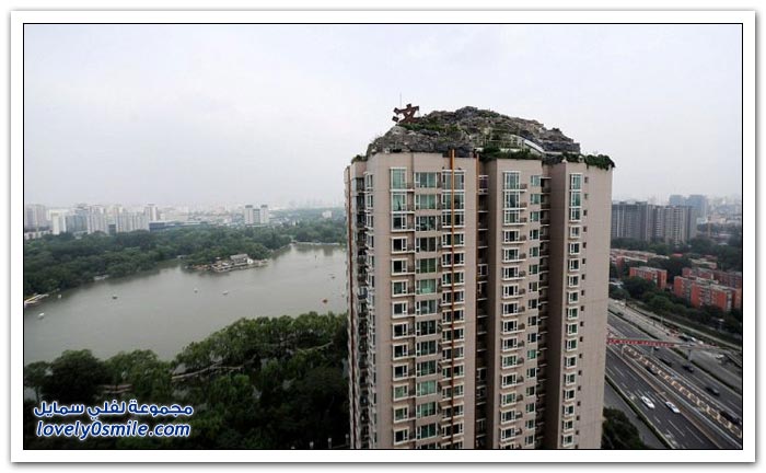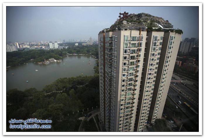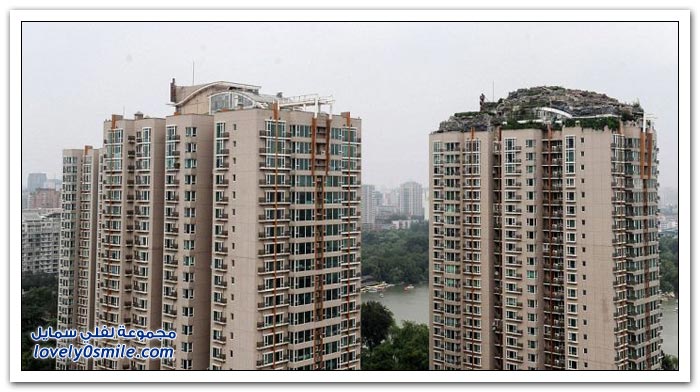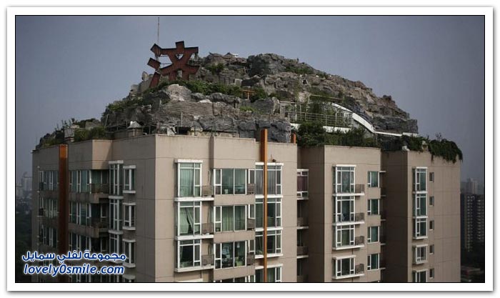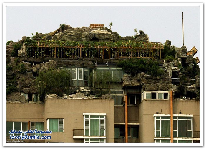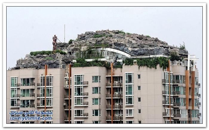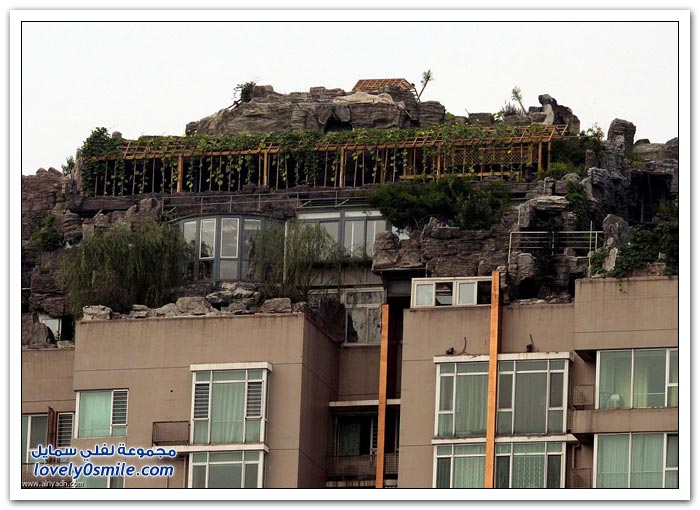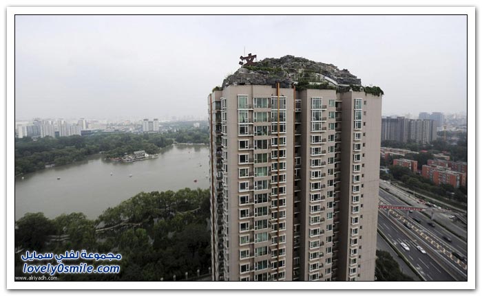 شكى سكان إحدى البنايات في الصين من جارهم الذي بنى بيتاً من الصخور والأشجار فوق 26 طابقاً