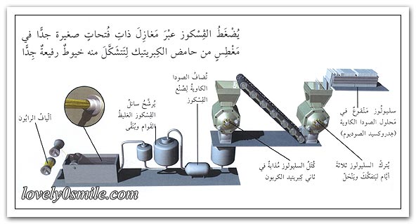 - ومنذ حوالي العام 1884 بدأ الكيميائيون تجارب لإنتاج ألياف اصطناعية جديدة من السليولوز -قوام المادة النباتية- كما في لب الخشب.