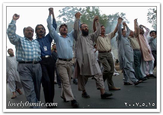 صحفيون باكستانيون يعتصمون أمام منزل الحاكم في مدينة كراتشي احتجاجا على إطلاق النار على مقر قناة تليفزيونية خاصة.