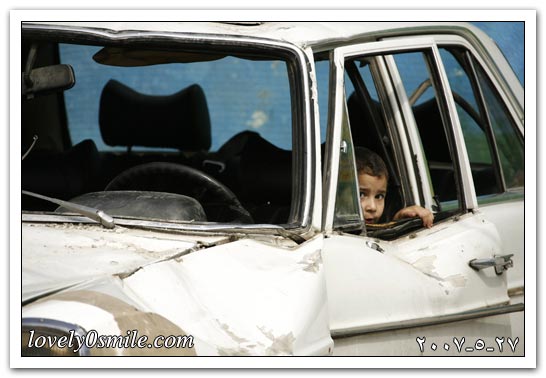 طفل فلسطيني يتحصن بسيارة محطمة في مخيم البداوي للاجئين شمالي لبنان.