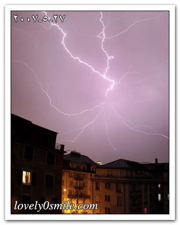 موجات البرق تضيء ليل مدينة لوزان السويسرية.