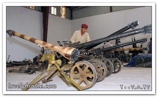 جندي يمني يستعرض الأسلحة والذخائر التي اشترتها وزارة الدفاع.