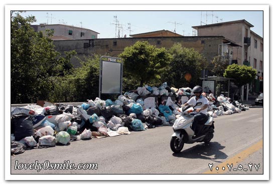 أطنان القمامة تتكدس في شوارع مدينة نابولي الإيطالية.