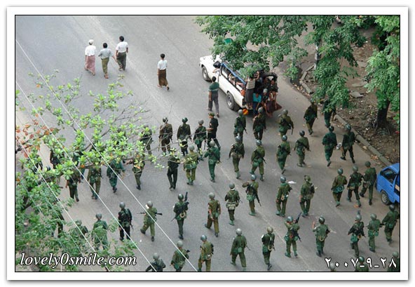 انتشار مكثف للشرطة في شوارع يانجون عاصمة ميانمار لقمع التظاهرات المناهضة للحكم العسكري.