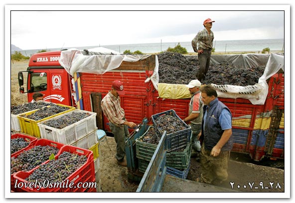 عمال أتراك يبدأون جني محصول العنب غرب مدينة اسطنبول.