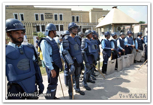 الشرطة الباكستانية تشدد إجراءاتها الأمنية حول مقر لجنة الترشيح لانتخابات الرئاسة في العاصمة إسلام آباد.