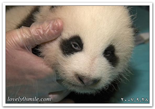 بيطري يفحص دب باندا حديث الولادة في حديقة حيوان سان دييجو بولاية كاليفورنيا الأمريكية. |