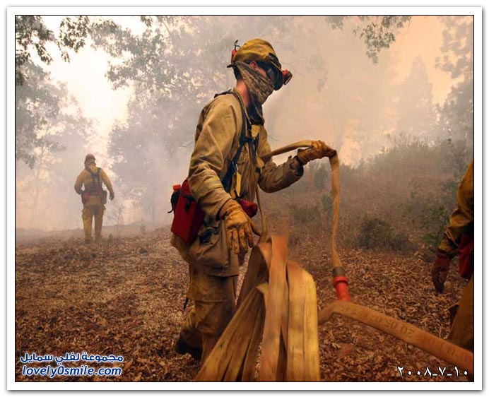 رجال إطفاء يواصلون مكافحة حرائق الغابات في ولاية كاليفورنيا الأمريكية.
