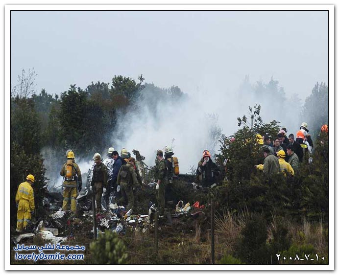 عمال إنقاذ وسط حطام طائرة ركاب صغيرة سقطت جنوبي شيلي.