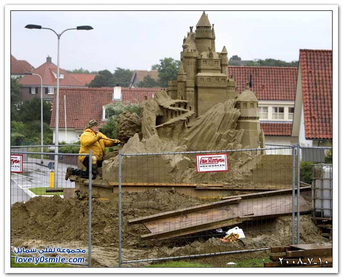 أمريكي يصمم قصرا من الرمال في مدينة نوردويجك الهولندية.