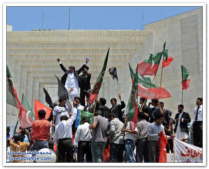 استمرار التظاهر في العاصمة الباكستانية إسلام أباد للمطالبة بإعادة القضاة المفصولين.