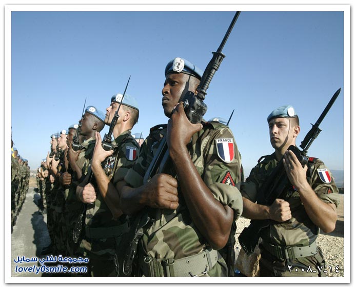 جنود فرنسيين ضمن قوات يونفيل يحتفلون باليوم الوطني لبلادهم في معسكرهم ببلدة الطيري جنوبي لبنان.