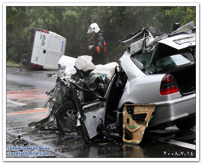 حطام سيارة وزير خارجية بولندا السابق برونسلاف جيريمك والتي تحطمت إثر حادث مروري.