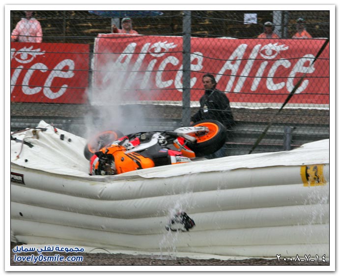 تحطم إحدى الدرجات النارية خلال سباق دولي بمدينة ساخسنرينج الألمانية.