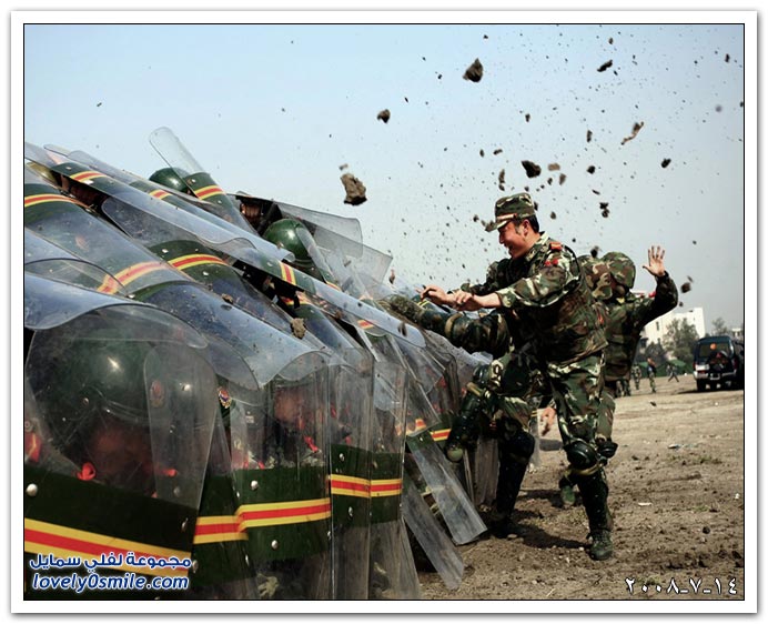 الشرطة الصينية يتدرب في مقاطعة هوبي على مواجهة التظاهرات.