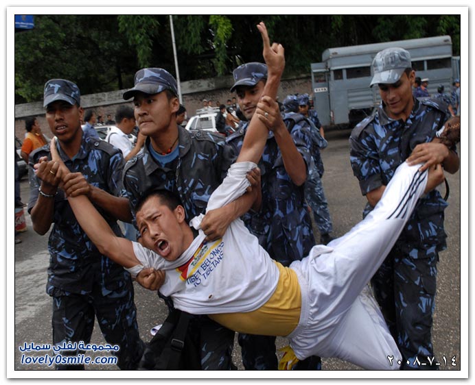 الشرطة النيبالية تعتقل أحد النشطاء المؤيدين لاستقلال التبت خلال تظاهرة بالعاصمة كاتماندو.