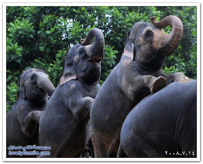 عدد من الأفيال المدربة تقدم عرضا داخل حديقة حيوان العاصمة السريلانكية كولومبو.