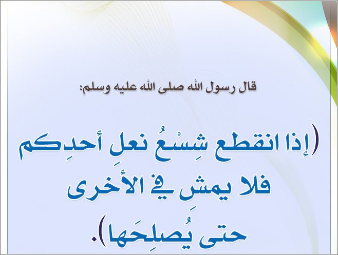 إذا انقطع شِسْعُ نعلِ أحدِكم فلا يمشِ في الأخرى حت