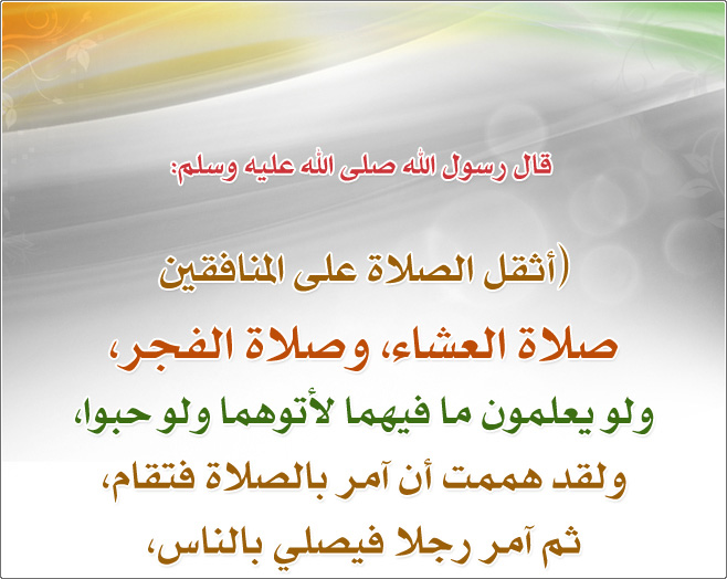 أثقل الصلاة على المنافقين صلاة العشاء وصلاة الفجر