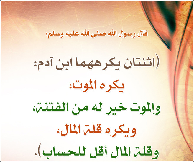 اثنتان يكرههما ابن آدم: يكره الموت والموت خير له م