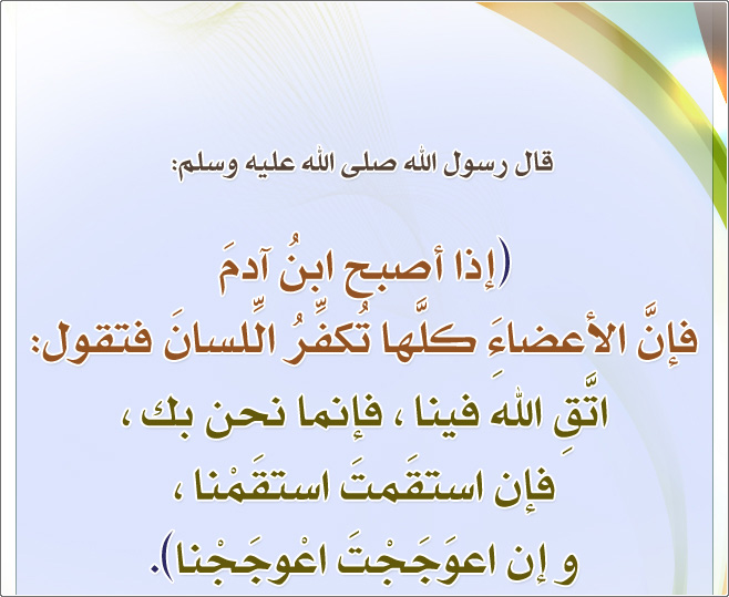 إذا أصبح ابن آدم فإن الأعضاء كلها تُكَفِرُ اللسان