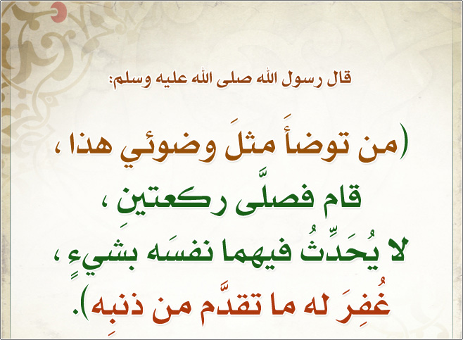 من توضأَ مثل وضوئي هذا قام فصلى ركعتين لا يحدث فيه
