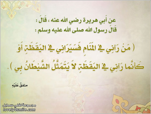 من رآني في المنام فسيراني في اليقضة أو كأنما رآني