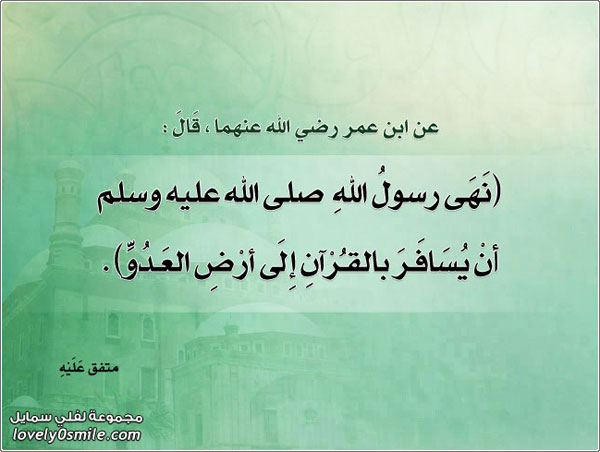 نهى رسول الله صلى الله عليه وسلم أن يسافر بالقرآن