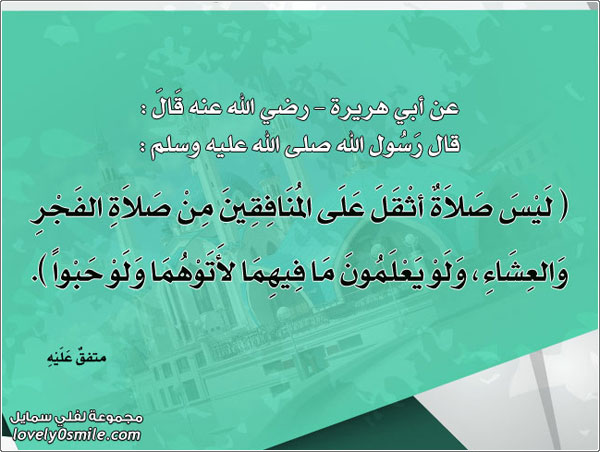ليس صلاة أثقل على المنافقين من صلاة الفجر والعشاء