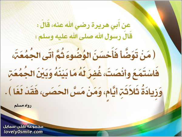 من توضأ فأحسن الوضوء ثم أتى الجمعة فاستمع وأنصت غف