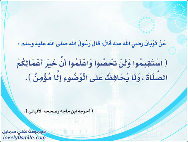 استقيموا ولن تحصوا واعلموا أن خير أعمالكم الصلاة و