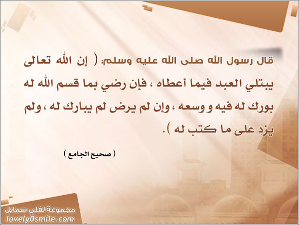 إن الله تعالى يبتلي العبد فيما أعطاه فإن رضي بما ق