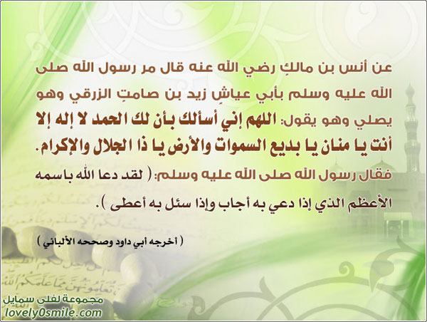 اسم الله الأعظم: أن رسول الله سمع رجلاً يقول: الله